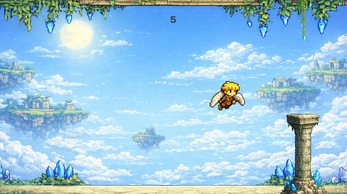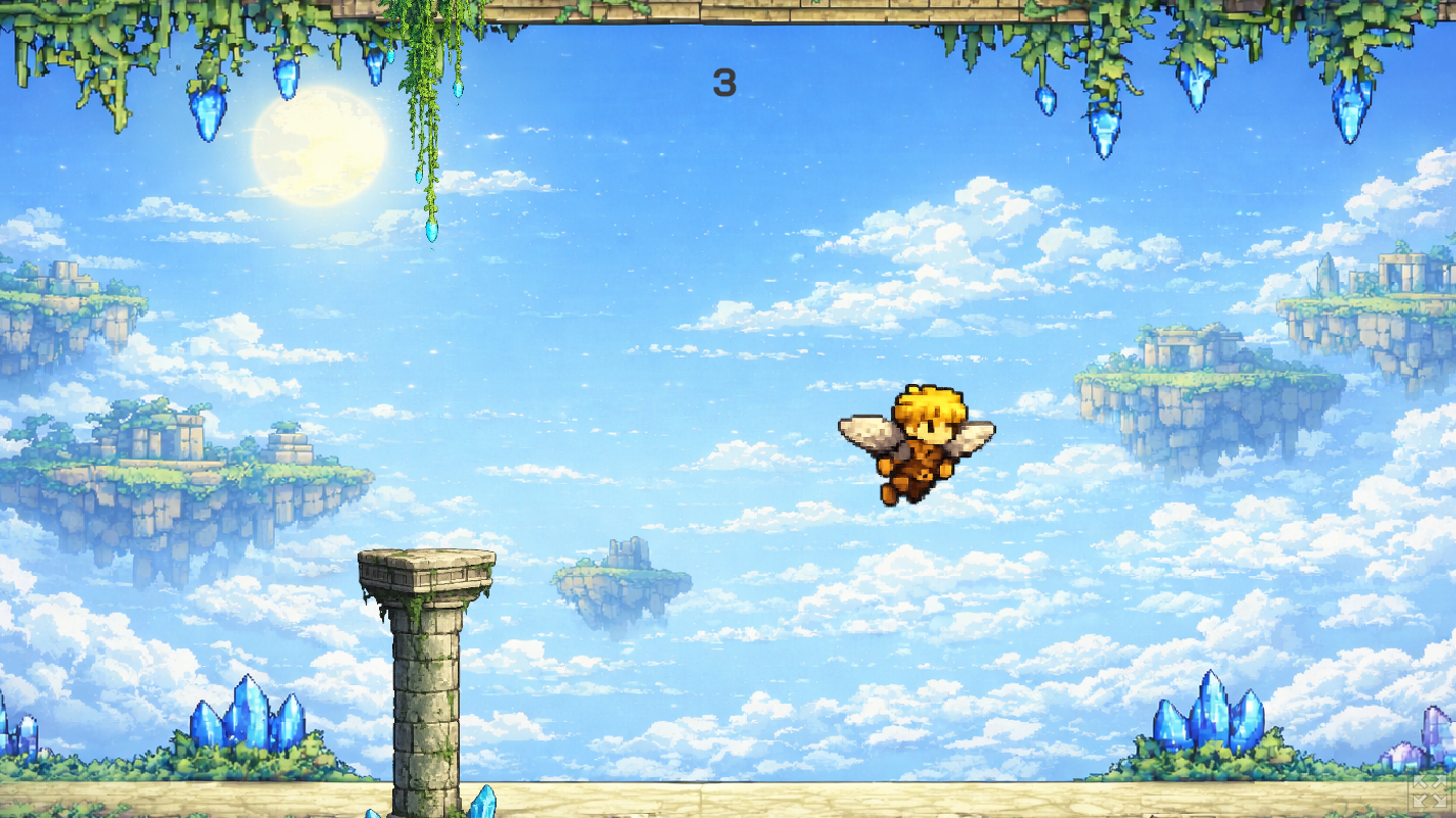 In this game, the player controls a winged character and must avoid obstacles for as long as possible to achieve a high score. The project was created as a game revamp, with updated visuals, a fantasy-inspired theme, and simple but engaging gameplay.